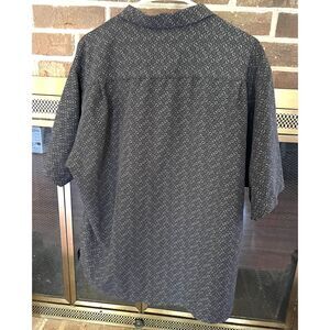 Haggar Performance Wear Men’s Large Button Up Black Geometric Print Shirt