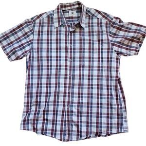 Haggar Plaid Short Sleeve Button Down Shirt Burgundy, Grey, Cream, Sz L