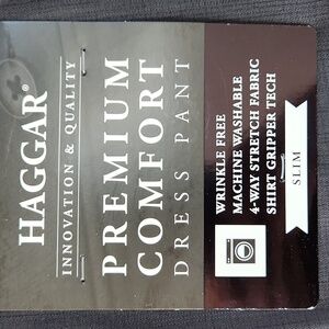 Haggar dress pants in a sleek black color. Perfect for formal occasions. Size 32x32. thin, cool dress slack. New.