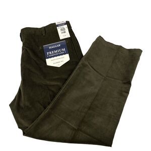 Haggar Premium Stretch Corduroy Pants Men's Size 40x29 Mltry Green Classic Fit