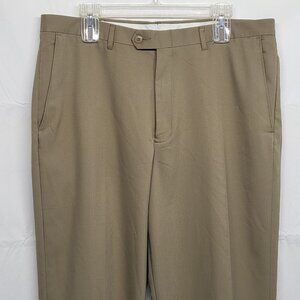 Haggar Q Mens Dress Pants 36 X 32 Straight Leg Polyester Beige