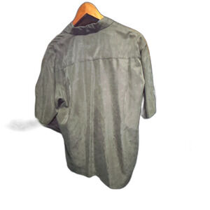 This classic Haggar shirt is perfect for casual or dressy occasions. It features a lightweight and comfortable fabric with a subtle textured pattern in a versatile gray color. The short sleeves and relaxed fit make it ideal for warmer weather.