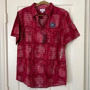 Haggar Short Sleeve Button Down Red Hawaiian Shirt. Size L *NWT*