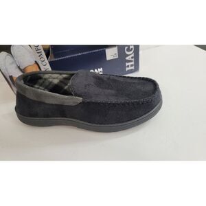 Haggar Slippers Mens Medium 8-9 Black Microsuede Fleece-Lined Venetian $52