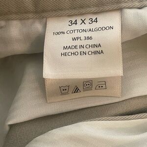 These Haggar chinos in a classic tan color are crafted from a smooth, lightweight fabric, perfect for both casual and semi-formal occasions. The straight-leg design offers a relaxed fit, ensuring comfort and style. Their subtle hue makes them a versatile addition to any wardrobe.