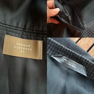 Haggar Clothing Co. Made in USA Men’s 44S Gray Houndstooth Windowpane Wool Sport Coat Blazer Suit Jacket