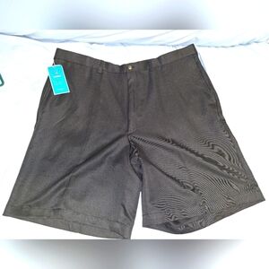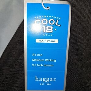This is a new with tags pair of Haggar men's shorts in a size 42W. Ideal for work or play. They are constructed with Performance Cool 18* wear material. They're plain front, no iron moisture wicking, 9.5" inseam.