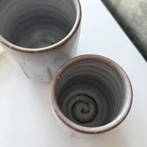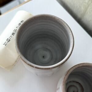 Hagi-Yaki Senshu Okada VII Faceted Yunomi Tea Cups Set Of 2 White Glazed Japan