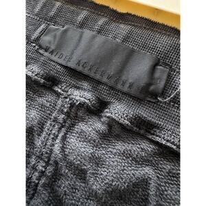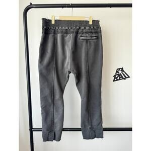 Overall good vintage condition. Signature washed grey color with intentional fade effect. There is a faint mark near the pocket, blends into overall wash (see close-up). Raw edges on cuffs as part of design.