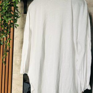 This one has that signature drape dropped shoulders, cropped sleeves, and a roomy body that still manages to feel intentional. The cotton is lightweight but not see-through, and the construction is everything you'd expect: soft, structured, slightly off in the best way.