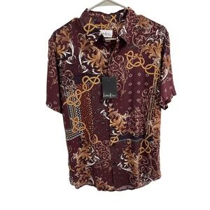Haiku Collective Maroon Short Sleeve Paisley Print Relaxed Button Up Shirt Small