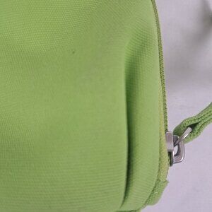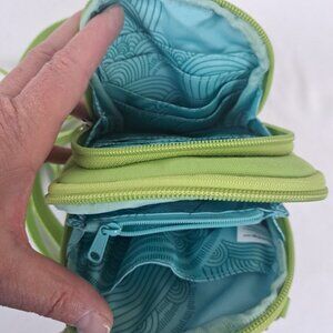 Haiku Crossbody Mini Bag. Apple/lime green with a purple feather. 2 Carry options- removable top handle and adjustable shoulder strap. Sturdy metal lobster claw hooks. Main compartment has a 3 sided all around zipper closure. Interior has 2 zip pockets and 1 slip in pocket (1 zipper pocket serves as a divider which makes 2 separate compartments. 8 card slots. Rear slip in pocket for easy access to items. Long zipper pulls. Signature feather and metal logo. Eco friendly using recycled material. This is a mini bag with great organizational options. Super cute! Preowned with some light wear- 2 marks on the bottom and slight very light discoloration on the front which might wipe clean. Please see pictures for approximate measurements. Great for travel, festivals, events. Boho, hippy, Gypsie, sustainable, vegan, Coachella.