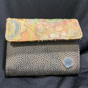 Snap front closure, back snap coin pouch, 6-slot card holder, opening for cash