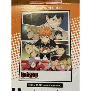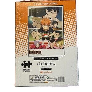 Brand new and factory sealed Haikyuu!! anime jigsaw puzzle featuring Hinata, Kageyama, Tsukishima, and other fan-favorite characters. This officially licensed Crunchyroll De.Bored puzzle includes a full-size poster of the completed image.