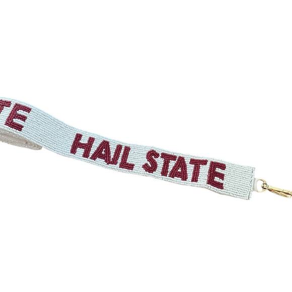 Show off your team spirit with this stylish Hail State bag strap which features a white base with maroon beads! Perfect for game day or any day you want to represent your favorite team.