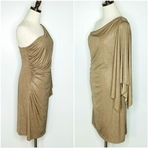 Hailey Brown Size 8 Shiny Satin One Shoulder Ruched Cocktail Evening Prom Dress