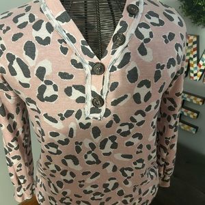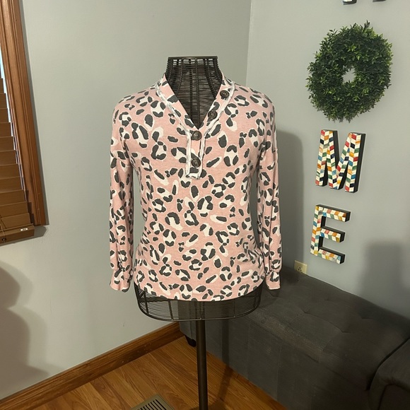 Perfect for Spring Pink leopard long sleeve blouse Light Pink and Gray