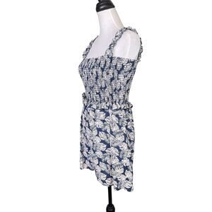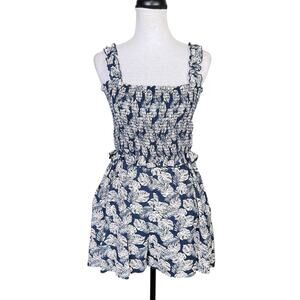 Hailey & Co Boutique Navy Monstera Botanical Print Smocked Sleeveless Romper
