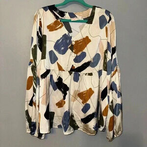 Hailey & Co. Brush Print Button Detail Elastic Cuffs Blouse Size 1X