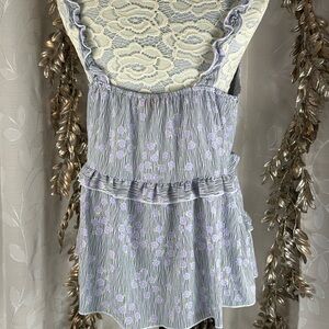 Hailey & Co Ruffle Tiered Striped Floral Tank Top - Medium Cottagecore Boho Chic