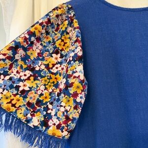 Hailey & Co Sz SM Blue Floral Linen Rayon Peplum Top Oversized Fit Boho Artsy