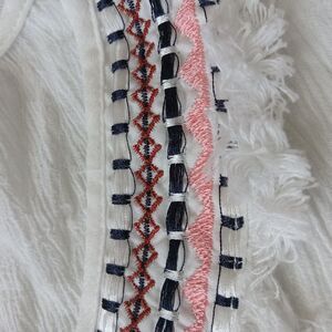 Hailey & Co. White Embroidered Bohohemian Fringe Tassel Blouse Women's Medium