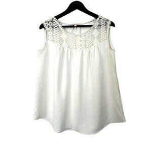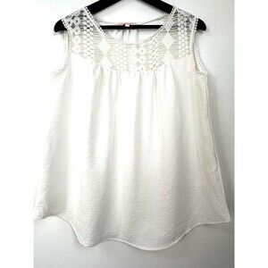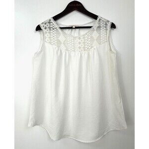 Hailey & Co Womens Sz M Tank Top Cream Ivory Blouse Flowy Embroidered Lace H2
