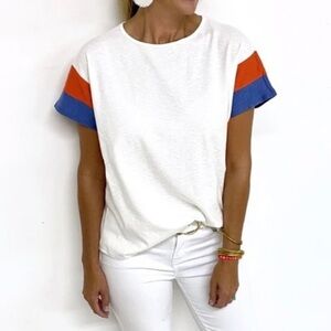 Hailey & Co oversized tee knit patchwork statement sleeves cobalt cap top