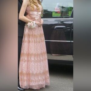 Hailey Logan by Adrianna Papell Pink & Gold Formal Prom Maxi Dress Juniors 3/4