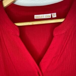 Hailey Lyn Red Sleeveless Rayon V-Neck Button Up Tie Front Loose Fit Medium