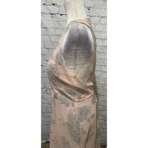 This Hailey Paige dress is perfect for any formal occasion, especially a prom. The gown features a beautiful almond color with sparkling glitter accents that will make anyone stand out in a crowd. The dress is a size 14 and is designed for women who prefer a regular size type. It has a sleeveless design and a zip closure for easy wear.