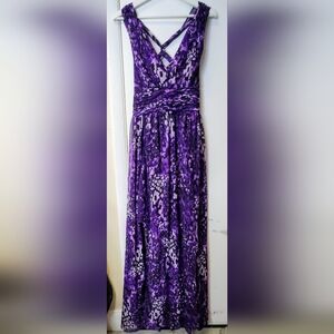 Hailey by Adrianna Papell Purple Criss-Cross Back Chiffon Sheer Maxi Dress SZ 12