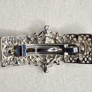 Measurements: barrette 2 1.2" by 3/4", combs 7/8" by 1 5/8", hairpins 2 3/8" by 1/4", weight of all 2.o ounces