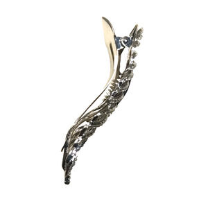 Hair Barrette Clip Silver Tone Rhinestone Feather Elegant Design Heavy Duty...