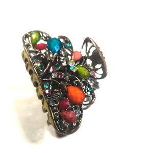 Hair Claw Clip Rhinestone Bright Colored Bejeweled Copper Tone Metal