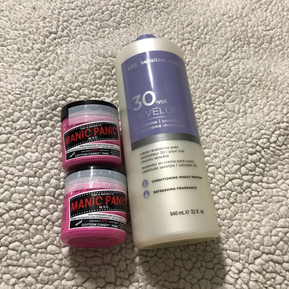 Unopened Cotton Candy Pink Manic panic semi permanent hair color and unopened 30 volume developer.