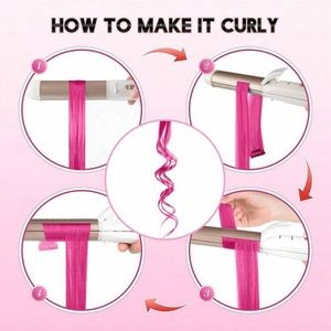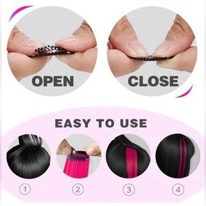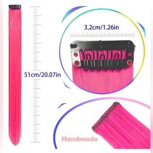 8 pcs gorgeous colorful clip-in hair extensions. Super easy to attach and they don’t fall off. Just get them on, trim, style and you are ready to go. Hair are synthetic.