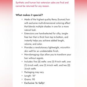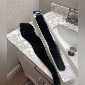 Two sets of 18” human hair extensions. Both are new. One was taken out of the packaging but it is not used (seems a tad messy but can be brushed out) Each set was $240 in store.