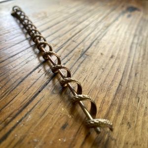 This is from a belly dancing convention in California I attended. Twist your hair and wrap around and around and around and secure with the long pin. Very cool gold Dreadlock hair accessory.