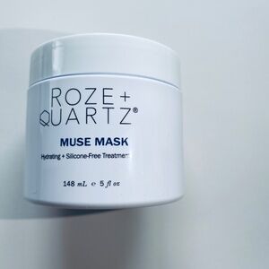 ROZE + QUARTZ Muse Hair Mask WEIGHTLESS BODY + REPAIRS + PROTECTS COLOR in a pot container.