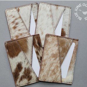 *****Please note that, due to the fact that genuine hair on leather is used, the patterns will vary. See the photos below for examples of variations to expect. We sell these in our online boutique as well (www.bluejuneoutfitters.com), so we are unable to guarantee the exact card holder you'll receive.