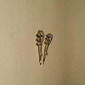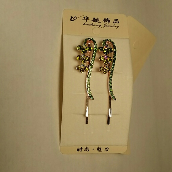 Cutie Hairpin Light Green Rhinestones with 3 Mini flowers (1 set)