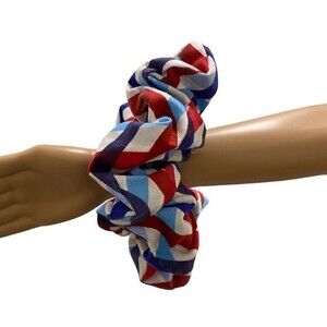 Hair Scrunchie Multicolor. XL. The perfect accessory to celebrate the 4th of July in style. Designed in vibrant shades of red, white, and blue, this scrunchy embodies the spirit of patriotism. Crafted with a blend of 90% Polyester and 10% Cotton, it offers a comfortable and secure hold for all-day wear. Machine Wash Cold. Lay flat to dry New without tags. Due to the different lighting and screen settings, the color of the item may be slightly different from the color of the image.