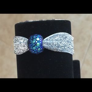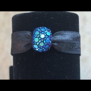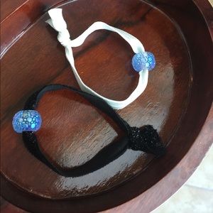 Handmade beautiful hair tie or bracelet. Please specify color. ❤️White with blue bead ❤️Light gray with light blue bead ❤️Black with blue bead ❤️Silver with blue bead. ❤️Black glitter with light blue bead ❤️Gold with Rhinestone bead