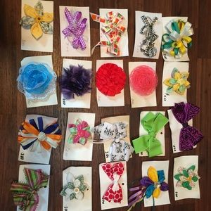 All different hair bows. Handmade. Pricing is different. Let me know which one your interested in and I'll will price you(:
