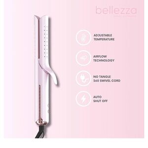 Bellezza AirGlider 2-in-1 Flat Iron/Curler - Cool Air Flow Technology - 1" Ceramic-Coated Plates - Dual Voltage, Multi Heat Levels (Pink Rose)