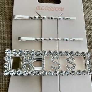 New Hair clips fashion pins Rhinestone Silver Deco Hair Clips "KISS" set of 3 PCS