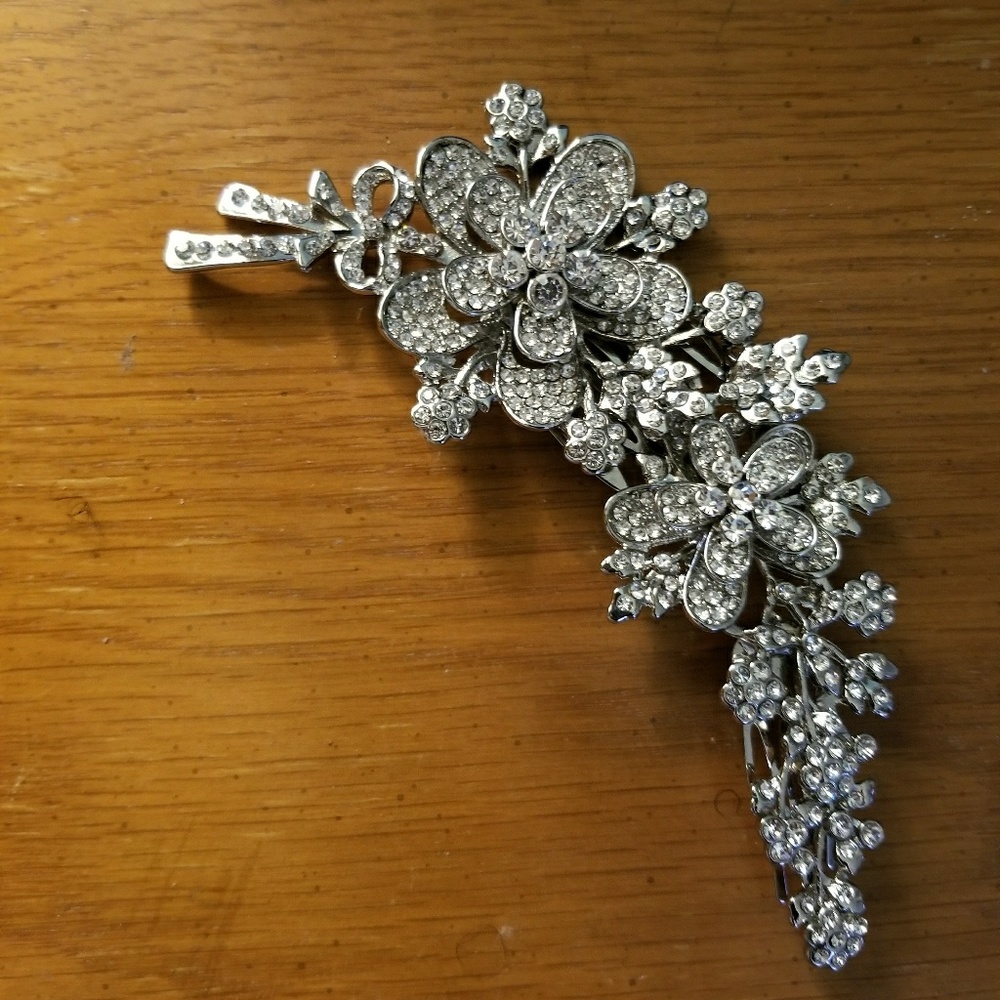Silver tone and rhinestone hair comb.