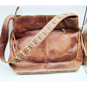 Hair on Leather Shoulder Fringed Tote Bag w/wallet