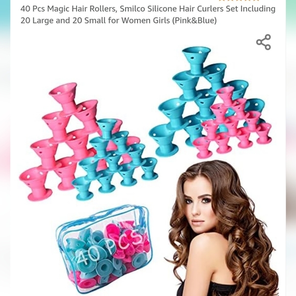 40 Pcs Magic Hair Rollers, Smilco Silicone Hair Curlers Set Including 20 Large and 20 Small for Women/ Girls (blue and pink)